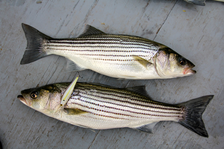 Our quarry this morning was found in the same range as reported last week but there were some subtle differences. Early morning fishing during the full moon is not as productive as it is under dark night skies. We headed out at first light but did not see any surface action until we reached Rock Creek. Even then the action included only a few stripers jumping here and a couple over there. We eased over to the spots where the last splash was seen. If another fish or two came up they were easy to catch when the boat was in casting range. Stripers in pursuit of shad are single minded and will bite just about anything that wiggles. But once they dive and start looking for another school they are hard to catch.